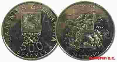 30.GRECJA, 500 DRACHM 2000 IRGRZYSKA OLIMP.