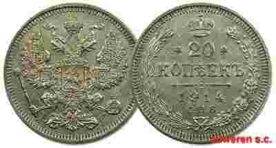 31.ROSJA, MIKOŁAJ II, 20 KOPIEJEK 1914 WS