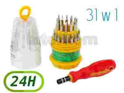Profesjonalny zestaw wkrętaków 31 w 1 wraz z praktycznym stojakiem jest niezastąpiony w każdym domu oraz serwisie GSM, AGD, RTV.