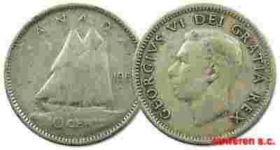 32.CANADA, JERZY VI, 10 CENTÓW 1951
