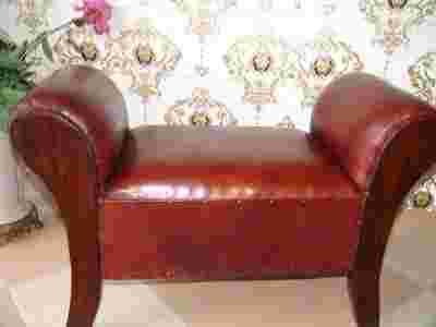 332 PUFA ZE SKÓRY SOFKA DREWNO HIT ANTYKI24