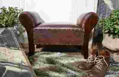 332 PUFA ZE SKÓRY SOFKA DREWNO HIT ANTYKI24