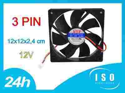 Produkt wysokiej jakości, optymalna ilość starannie zaprojektowanych łopatek sprawia, że wentylator charakteryzuje się wysoką wydajnością przy zachowaniu niskiej głośności. Wymiary: 120 mm x 120 mm x 24 mm Prędkość: ~2000RPM Głośność: <20 DBA Zasilanie: DC 12V, 0.36A Przewód: 25 cm Złącze: 3 PIN