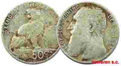 36.BELGIA, LEOPOLD II, 50 CENTIMOW 1901 DER