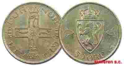36.NORWEGIA, HAAKON VII, 50 ORE 1921