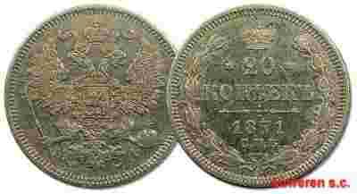 36.ROSJA, ALEKSANDER II, 20 KOPIEJEK 1871 NI