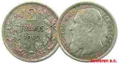 37.BELGIA, LEOPOLD II, 2 FRANKI 1909 DES