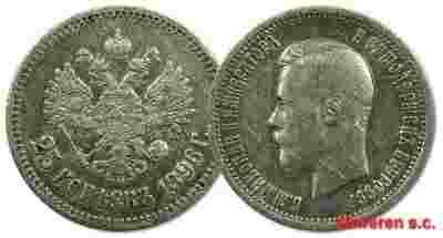 37.ROSJA, MIKOŁAJ II, 25 KOPIEJEK 1896