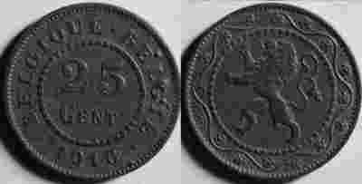 399 - Belgia , 25 Centów 1916