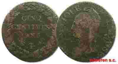39.FRANCJA, 5 CENTIMÓW 1796 - 1797/ L'AN 5 I