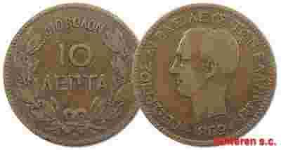 39.GRECJA, JERZY I, 10 LEPTA 1869 BB