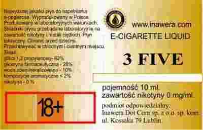3 FIVE 0mg/ml poj. 10ml LIQUID INAWERA
