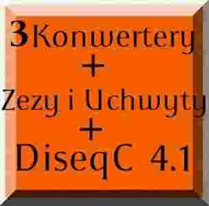 Do "kompetu" Zezy z uchwytami do zamocowania konerterów. DiseqC 4.1 zewnętrzny firmy Globo lub Opticum wraz z obudową- "obecnie" przymocowawy do "talerza". Do tunera "podłączany" jest tylko jeden kabel- bardzo dobry "sposób" by poszerzyć istniejącą instalację ("standardowy" HotBird) o inne "Satelity". W/w Komplet b.dobrze "współpracował" z dekoderem Optibox i Ferguson (obecnie działa). Pomimo trudności dostępu do anteny (zamontowana na elewacji na wys. ok 7-8m), to bez przyrządów mierniczych ustawione satelity (7e, 13e, 19.2e i 23.5e) są na poziomie siła/jakość 99/90-95% Kanały bardzo szybko są zmieniane- jak z "jednego" konwertera a nie z "czterech" ;) Gratis 3szt. kabla (dł ok. 1.2-1.5m) zakończone obustronnie wtykami F.