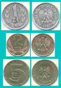 3 monety z 1982 r. - 1 zł; 2 zł i 5 zł,