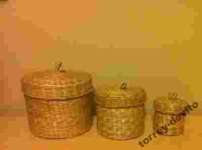 3 pudełka koszyki z bambusa z pokrywkami