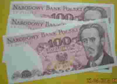3 szt. banknoty 100 zł z 1986 r.
