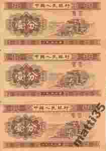 3 sztuki Chiński kupon 1953 r. stan I