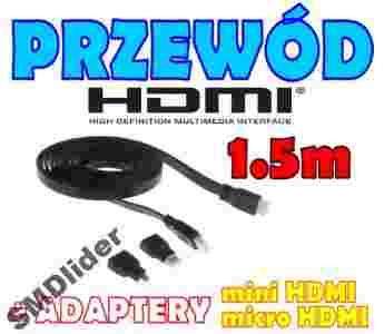 PRZEWÓD KABEL NIEPLĄCZĄCY PŁASKI3w1 KABEL TV HDMI, MINI HDMI, MICRO HDMI - 1.5 m -