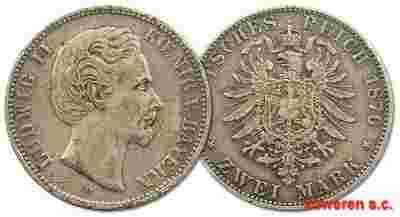 41.BAVARIA, LUDWIK II, 2 MARKI 1876 D