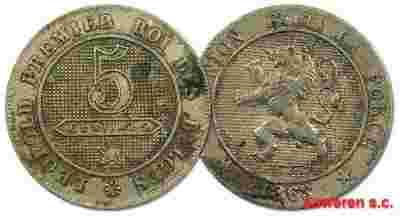 41.BELGIA, LEOPOLD I, 5 CENTIMÓW 1863