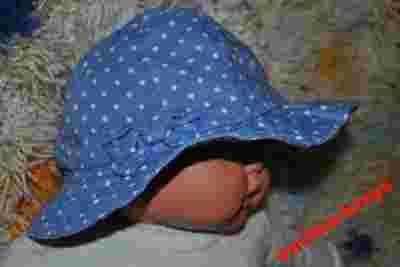 42-44cm*Niebieski kapelusik w groszki kokardka