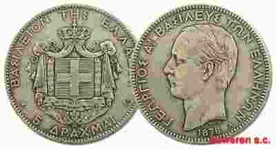 42.GRECJA, JERZY I, 5 DRACHM 1876 A