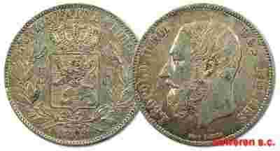 44.BELGIA, LEOPOLD II, 5 FRANKÓW 1868