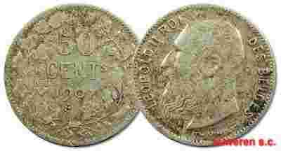 45.BELGIA, LEOPOLD II, 50 CENTIMÓW 1907 DES