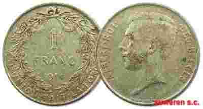 46.BELGIA, ALBERT I, 1 FRANK 1911 DES