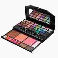 Zestaw do makijażu zawiera wszystko co potrzebne aby wykonać pełny makijaż. Bardzo poręczne opakowanie Zestaw zawiera: 32 cienie, 6 pomadki, 2 Róże, 1 Bronzer, 1 cień do brwi, 1 kremowy cień do brwi, 1 rozświetlacz, 3 aplikatory do cieni