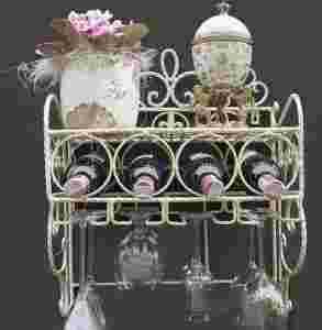 484 ELEGANCKI RETRO REGAŁ WINO AŻUR METAL ECRU