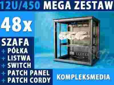 Oferowany zestaw to kompletnie wyposażona szafa RACK-owa wisząca 19'' o wysokości roboczej 12U (635mm) oraz głębokości 450mm i szerokości 600mm. Przeznaczona dla 24-stanowiskowych sieci teleinformatycznych (komputerowych i telefonicznych). Zestaw dostarczony w paczkach (elementach do samodzielnego montażu). Produkt łączy w sobie wiele ważnych cech takich jak: uniwersalność, estetyka i elegancja oraz prostota i wygoda montażu.