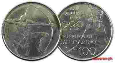 49.SAN MARINO, REP.,100 LIROW 1980 IGRZYSKA OLIMP.