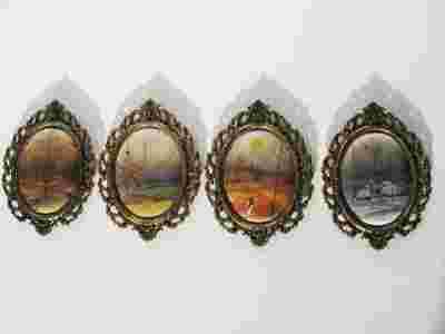 4 OBRAZKI JEDWAB OBRAZEK OBRAZ MINIATURA RAMA BCM