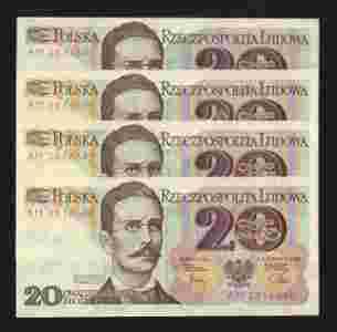 4 szt 20 zł ser AM 1982 r stan UNC LOT