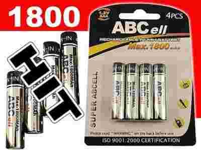 4 szt. AKUMULATORKI 1800 MAH ABCELL AAA R3 BOX FV