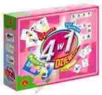 OPIS GRY:"4 w 1 - Dziewczyny" to zestaw 3 różnych gier i 60 puzzli do układania. Wszystkie gry i puzzle łączy grafika o tematyce skierowanej do dziewcząt. Charakter gier jest zróżnicowany. Prosta gra w karty "Piotruś" wzbudzi największe zainteresowanie u najmłodszych. Gra "Pamięć" to dobry trening pamięci dla każdego. "Domino" jest również uniwersalne, grają w nie chętnie dorośli i dzieci. Puzzle, to świetne ćwiczenie spostrzegawczości, cierpliwości i skupienia. PUDEŁKO ZAWIERA: 25 kart do gry "Piotruś" 28 elementów domina 10 plastikowych podstawek 40 tabliczek do gry "Pamięć" 60 puzzli instrukcja