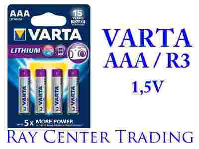 Typ VARTA 06103 Rozmiar baterii AAA Wysokość 44.5 mm Waga 7.7 gr System elektrochemiczny Bateria litowa CardPower (LI/IRON D) Napięcie 1.5 V