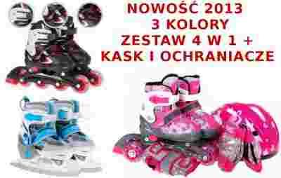 REWELACYJNY POMYSŁ NA PREZENT O KAŻDEJ PORZE ROKU !!! FANTASTYCZNY ZESTAW NA LATO LUB ZIMĘ - ŁYŻWOROLKI 4 W 1 WRAZ Z KASKIEM I OCHRANIACZAMI !!!