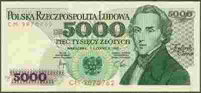 5000 złotych 1982 Fryderyk Chopin * UNC * seria CM