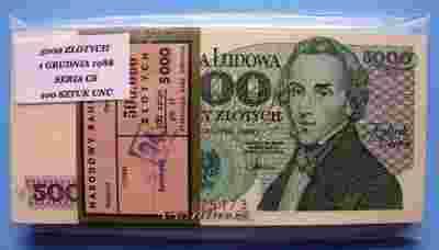 5000 ZŁOTYCH 1988 R PACZKA BANKOWA UNC SERIA CS !