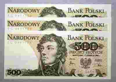 500 zł 1982 EC, 3 szt z kolejną numeracją, unc
