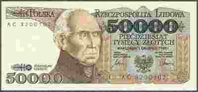 50.000 złotych 1989 stan bankowy UNC seria AC