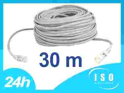Kabel sieciowy LAN Osłona zewnętrzna: PVC Zakończenie wtykami RJ45 ZALEWANE FABRYCZNIE WTYCZKI Długość 30 m Długość wtyku 40mm Kolor szary