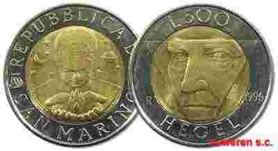 53.SAN MARINO, 500 LIROW 1996 HEGEL