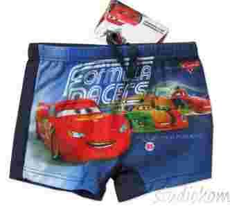 Nowe bokserki - kąpielówki chłopięce, super modna nowa kolekcja na lato. Z przodu wiązane sznureczkiem, w kolorze niebieskim z nadrukiem z bajki Auta, tył gładki w kolorze granatowym. Produkt oryginalny z metkami, na licencji, jakość pierwsza,