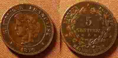 5 Centimes 1876 A - Piękna !
