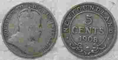 5 Cents 1908 NOWA FUNLANDIA srebro