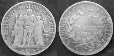 5 francs,Francia 1874 Hercules,srebro,bcm,ladna