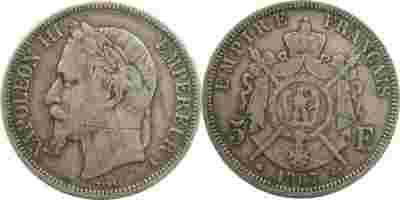 5 FRANKÓW 1867 NAPOLEON III GCN 4.2